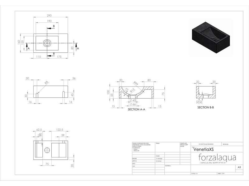 Naturstein-Handwaschbecken Venetia XS Marmor, matt geschliffen, 29 x 16 x 10 cm, ohne Hahnloch