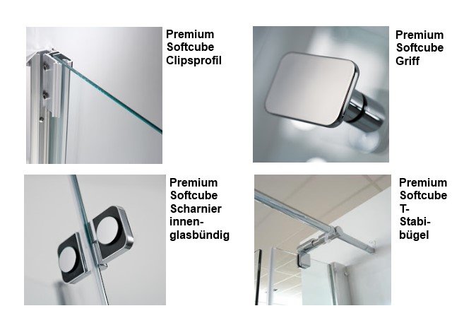 Viertelkreis-Duschkabine Softcube Premium, 90 x 90 x 185 cm, 4-teilig
